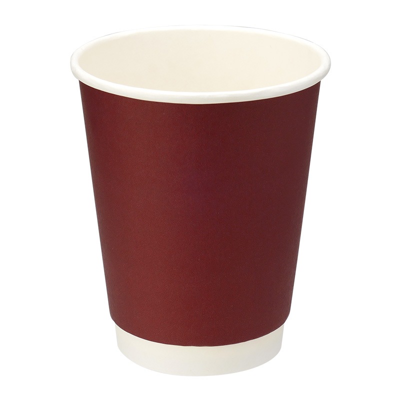 二重断熱紙コップ 12オンス ワインレッド 口径90mm 25個