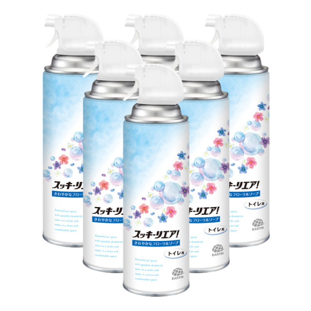 トイレ消臭スプレー スッキーリエア! トイレ用 さわやかなフローラルソープ 350ml×6本 アース製薬 消臭芳香剤
