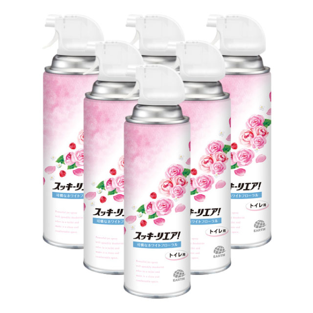 トイレ消臭スプレー スッキーリエア! トイレ用 可憐なホワイトフローラル 350ml×6本 アース製薬 消臭芳香剤