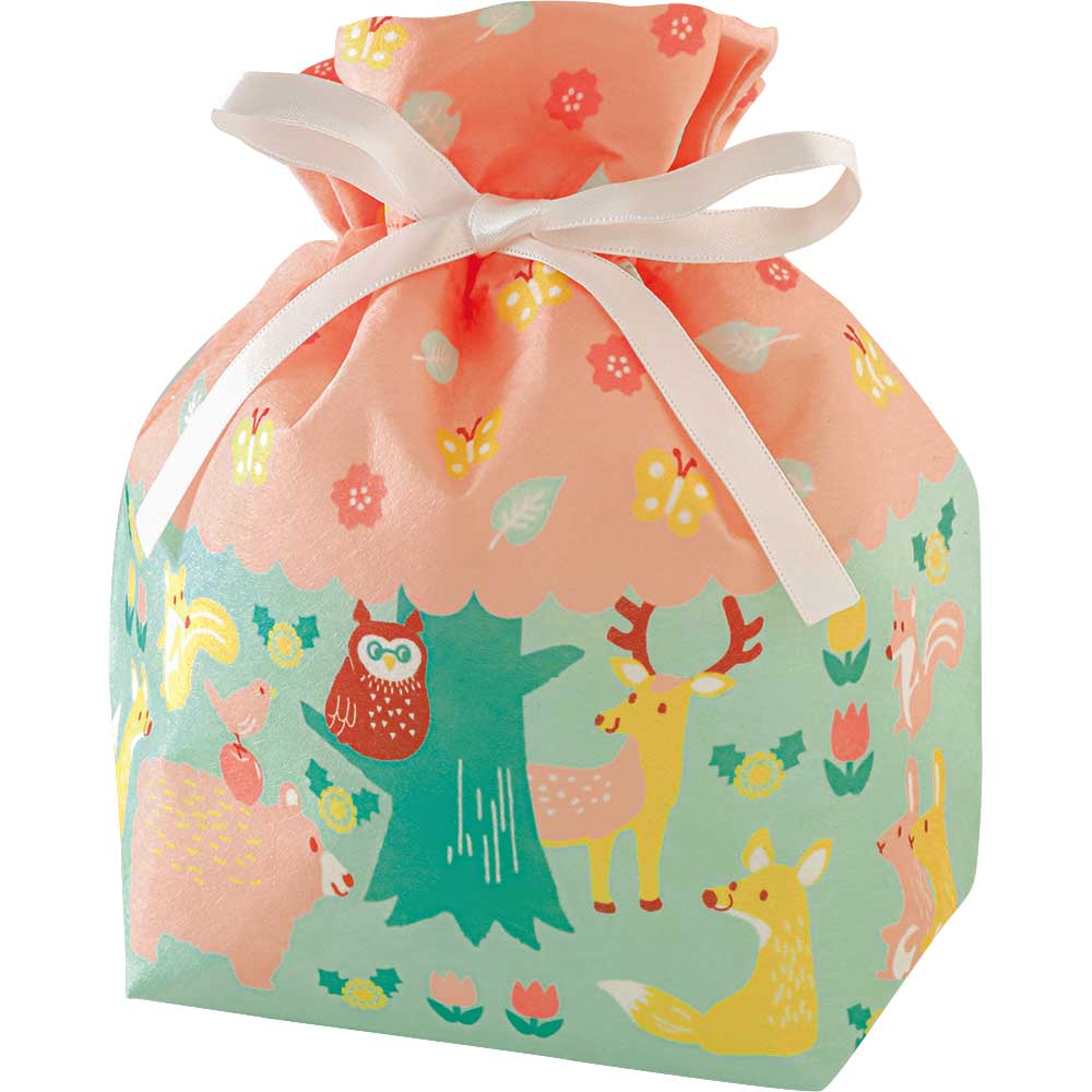 巾着 リボン 小 森のどうぶつ春柄FP(1セット20枚~)