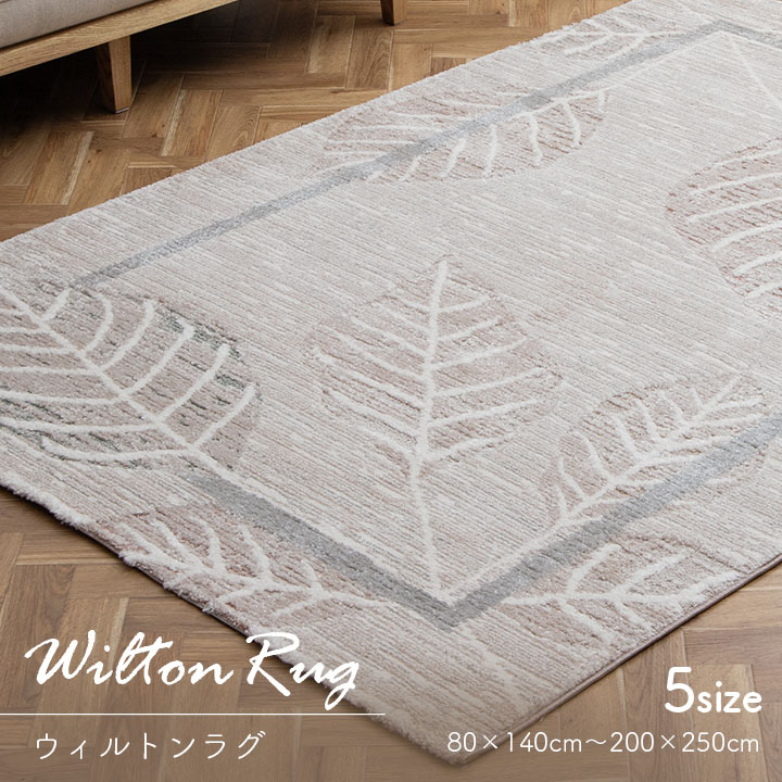 ウィルトンラグ ルアン トルコ製 リーフ柄 ナチュラル ホワイト