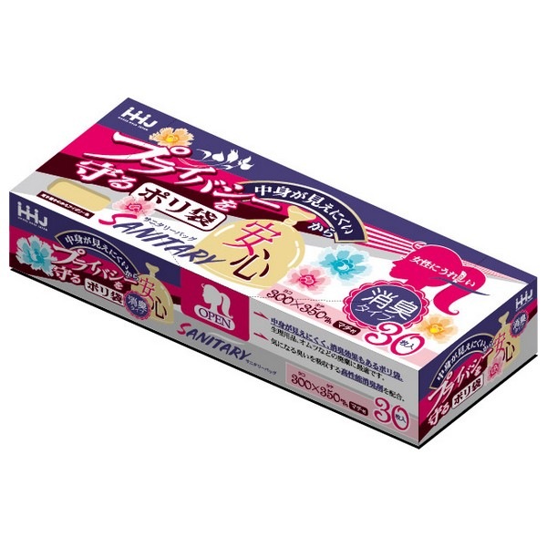 【法人様限定】消臭機能付きサニタリー袋 HDPE 0.02×300(マチ110)×350mm アイボリー半透明 30枚×96箱(2...