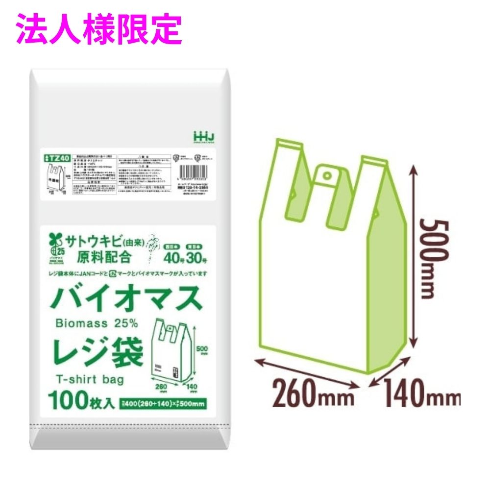 【法人様限定】バイオマス レジ袋 半透明 HDPE 140×400×500 半透明 100枚×30冊(3000枚) TZ40 3ケ...