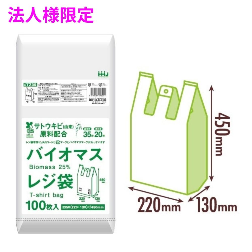 【法人様限定】バイオマス レジ袋 半透明 HDPE 150×450×550 半透明 100枚×20冊(2000枚) TZ45 3ケ...