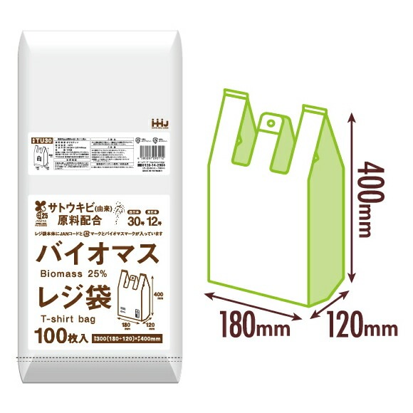 【個人宅配送可】バイオマスレジ袋 白 TU30(西日本30号、東日本12号) 100枚×60冊(6000枚)【取り寄せ商品・即納不...