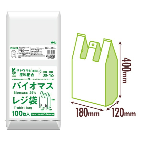 【個人宅配送可】バイオマスレジ袋 半透明 TZ30(西日本30号、東日本12号) 100枚×60冊(6000枚)【取り寄せ商品・即...