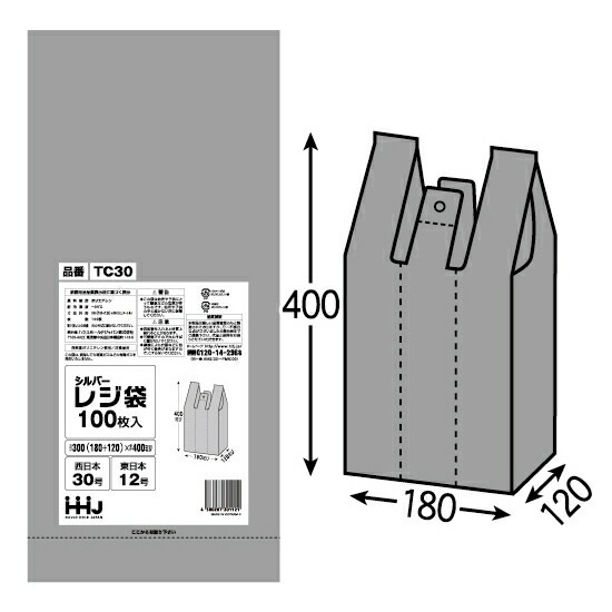 【法人様限定】レジ袋 シルバー TC30(西日本30号、東日本12号) 100枚×30冊(3000枚) 3ケースロット【メーカー直...