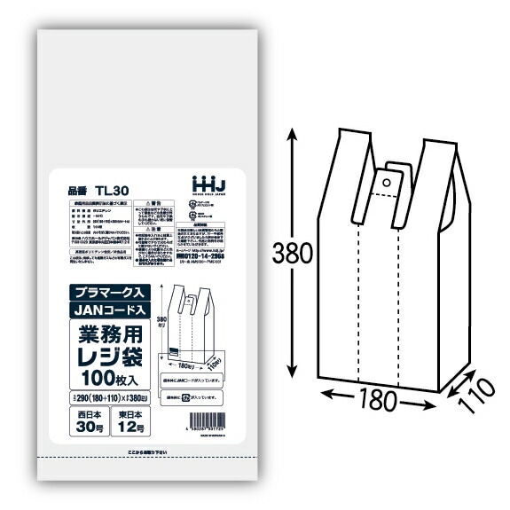 【個人宅配送可】レジ袋 白 JANコード入 TL30(西日本30号、東日本12号) 100枚×40冊(4000枚)【取り寄せ商品・...