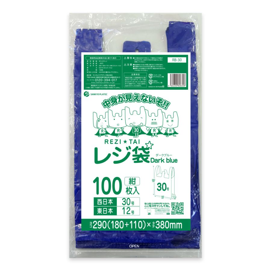 レジ袋 厚手タイプ 西日本30号 ブロック有 紺 0.014mm厚(100枚×80冊)