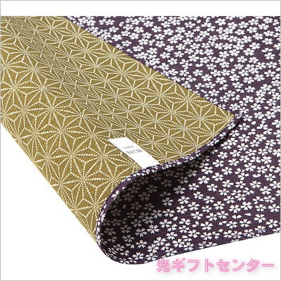 二巾一越織両面柄ふろしき 紫/金茶×サメ小紋/小桜 90-7