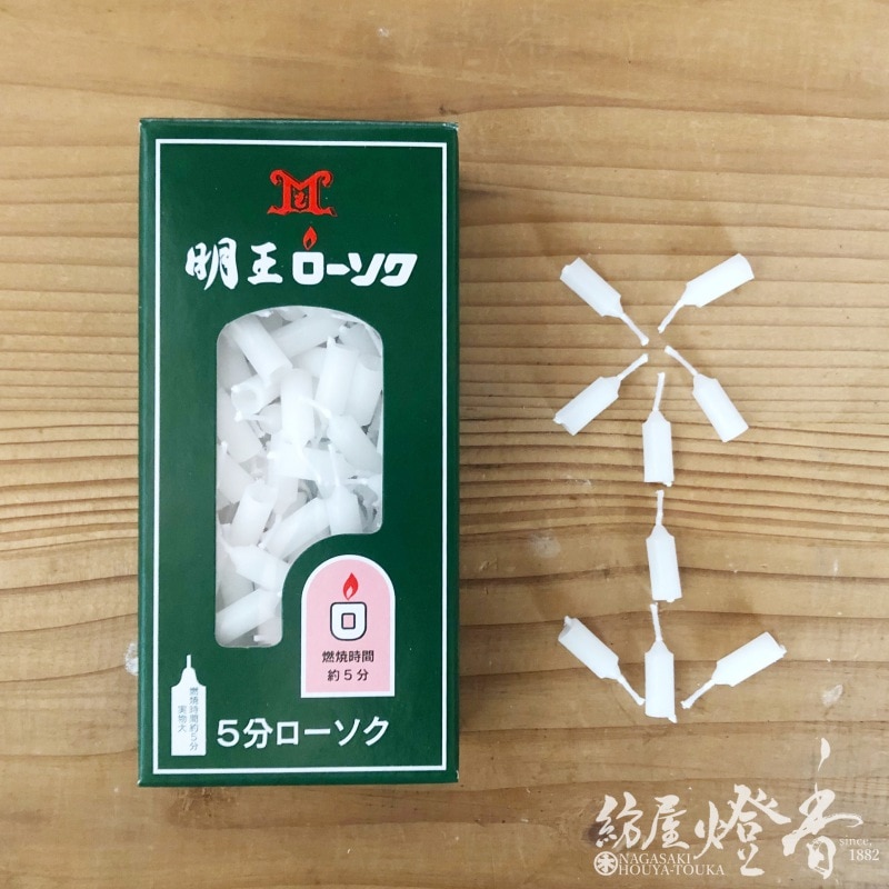 普通蝋燭『明王ローソク【5分ローソク[90g/260本]】紙箱[燃焼5分]』マルエス