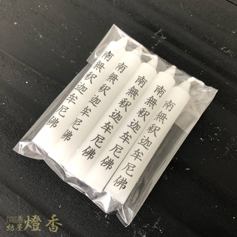 蜜蝋入/文字ろうそく『経文入蝋燭【法灯・南無釈迦牟尼佛(なむしゃかむにぶつ)/大ダルマ/12本入】紙箱入[燃焼40分]』アシベ工芸