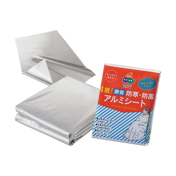 緑十字 防災用品 4層!静音防寒・防風アルミシート 2130×1370mm アルミ蒸着ポリエチレン 380396