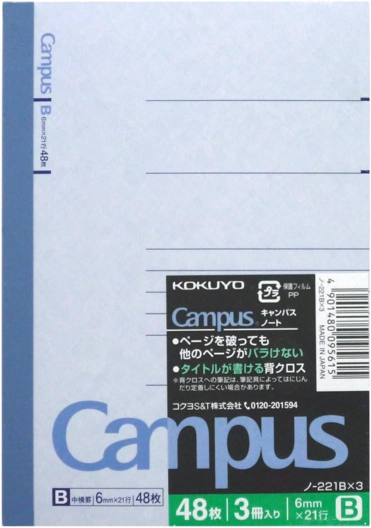 未使用品 コクヨ ノート キャンパスノート 3冊パック A6 B罫 48枚 ノ-221BX3 【送料無料】【メール便でお送りします...