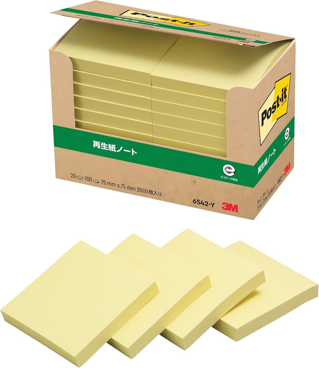 【未使用品】箱破れあり 3M ポストイット 付箋 ノート イエロー 75×75mm 100枚×20パッド 6542-Y