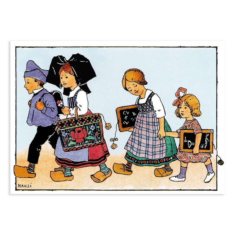 Hansi(ハンジ) ポストカード (4人の子どもたちの登下校)