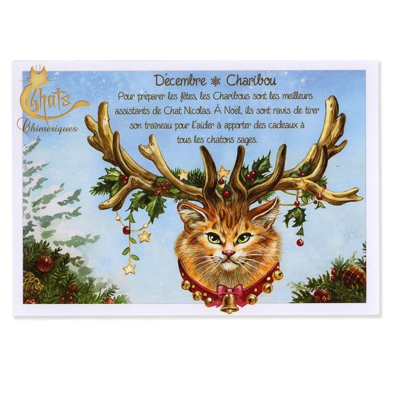 フランス製 ネコのポストカード(Decembre Charibou) 12月 トナカイ