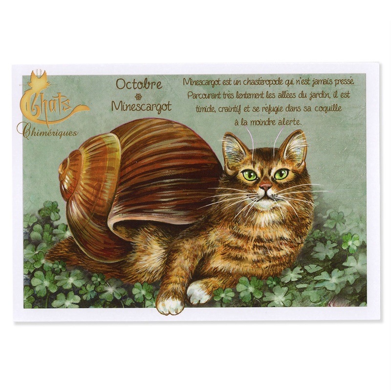 フランス製 ネコのポストカード(Octobre Minescargot) 10月 カタツムリ