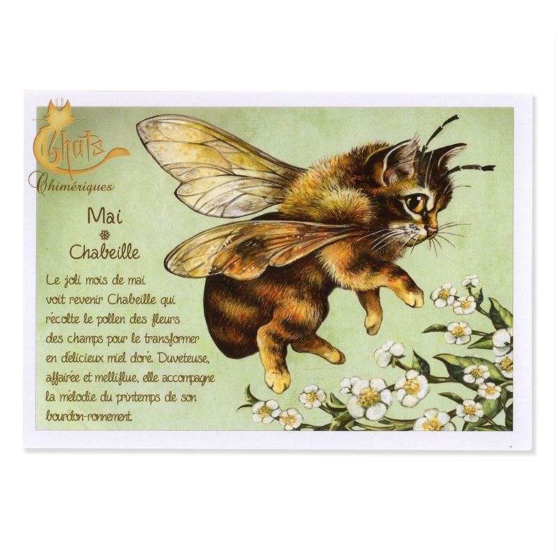 フランス製 ネコのポストカード(Mai Chabeille) 5月 ミツバチ