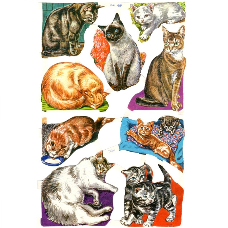 ドイツ製 クロモス スクラップシート (猫×カップ×クッション×入れ物)