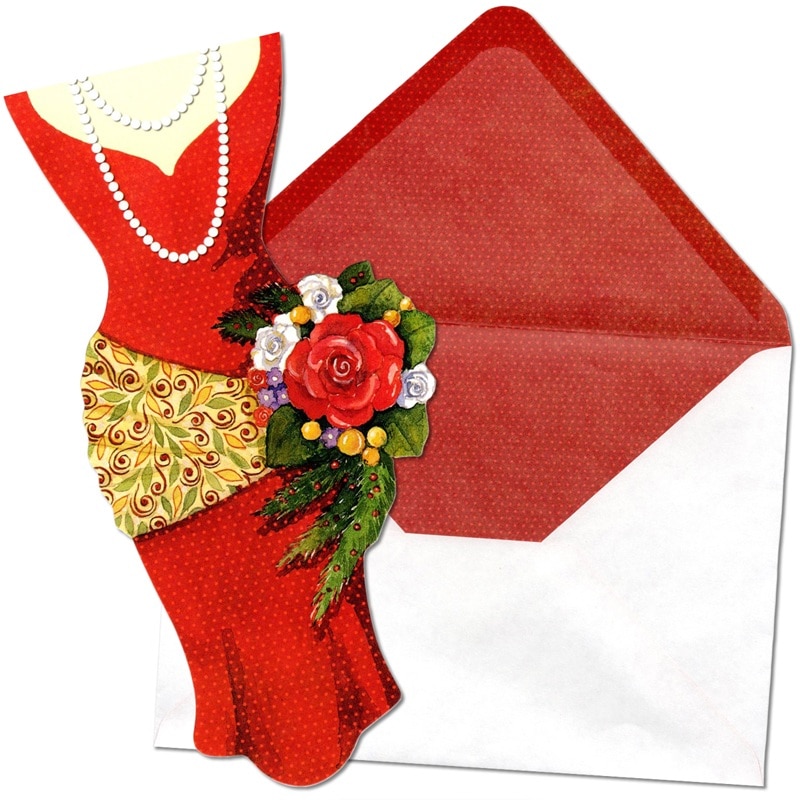 Punch Studio 封筒付きグリーティングカード (真っ赤なドレスと赤い薔薇) ダイカット