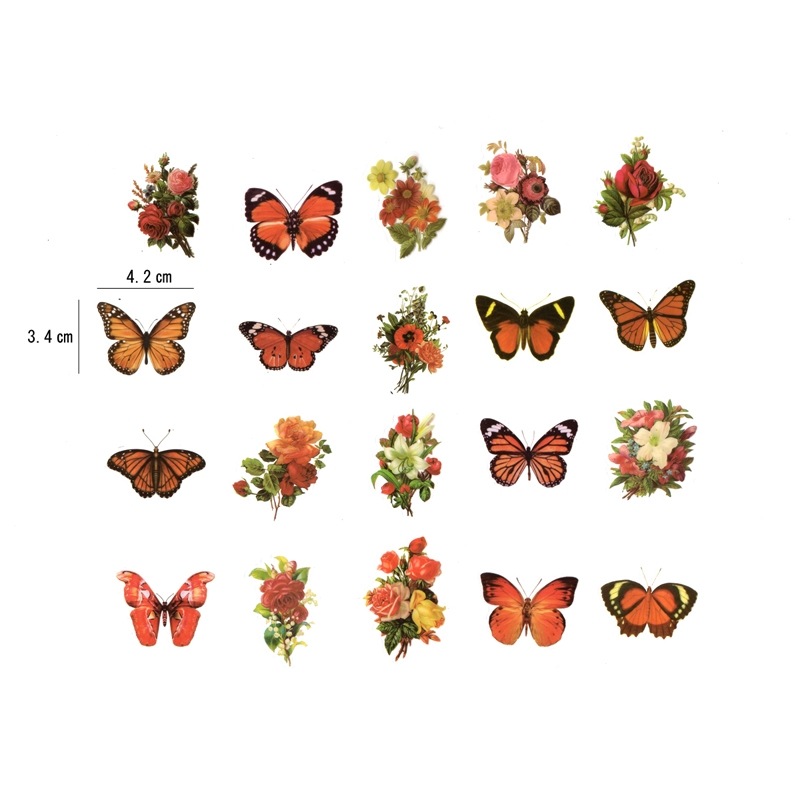 フレークシール セット スクラップ素材 蝶とお花シリーズ (レッド) PET素材