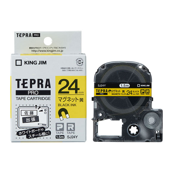 [SJ24Y] テプラPROテープカートリッジ 24mm マグネットテープ 黄/黒文字
