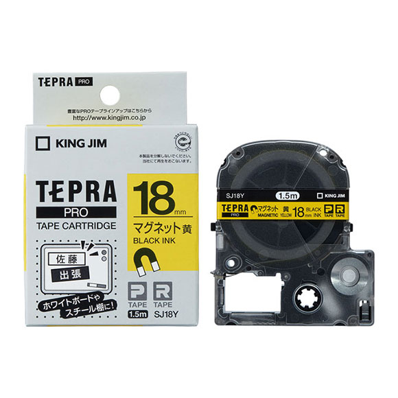 [SJ18Y] テプラPROテープカートリッジ 18mm マグネットテープ 黄/黒文字
