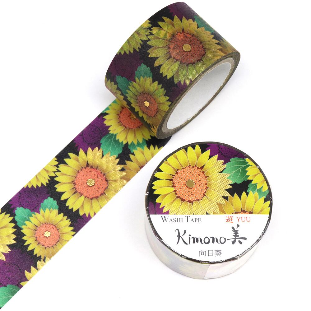 SAIEN Kimono美 遊YUU マスキングテープ 向日葵 15mm (GR-2035) 7m巻 レトロモダン 金箔グラデーシ...
