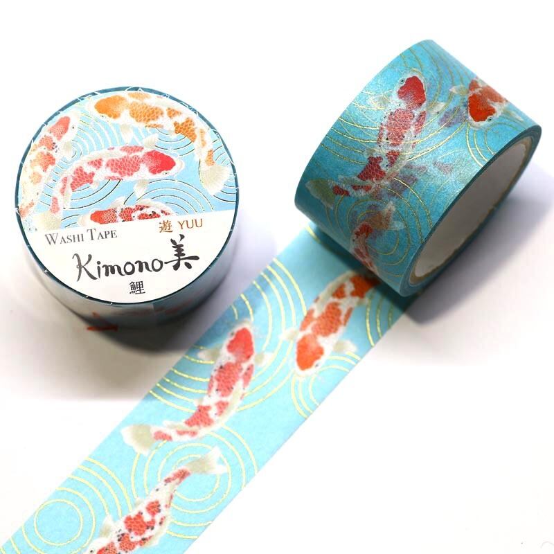SAIEN Kimono美 遊YUU マスキングテープ 鯉 15mm (GR-2011) 7m巻 レトロモダン 金箔グラデーション...
