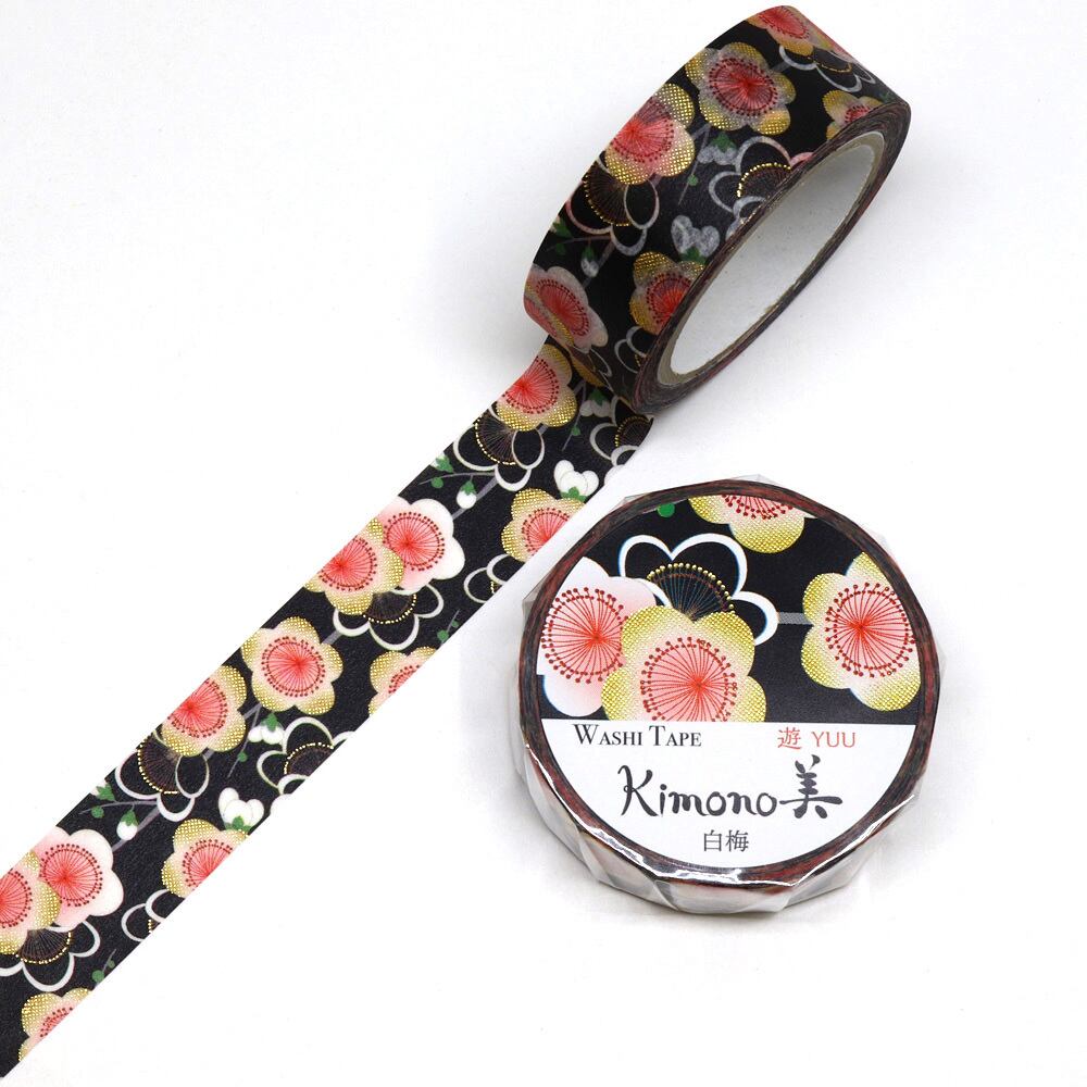 SAIEN Kimono美 遊YUU マスキングテープ 白梅 15mm (GR-2027) 7m巻 レトロモダン 金箔グラデーショ...
