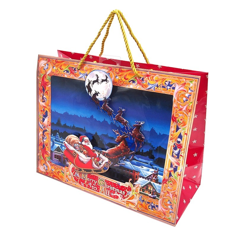 Popshots Studios 【クリスマス】 ギフトバッグ | 紙袋 Lサイズ (サンタクロース×そり×夜の街)