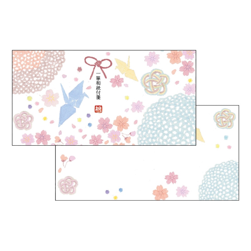 いわぶちさちこ 祝しゅく 一筆和紙付箋 飾り紐、折り鶴と桜