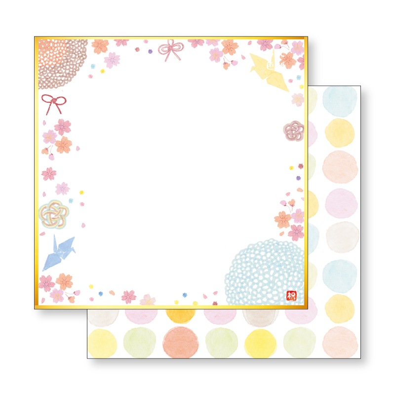 いわぶちさちこ 祝しゅく ミニ1枚色紙飾り紐、折り鶴と桜