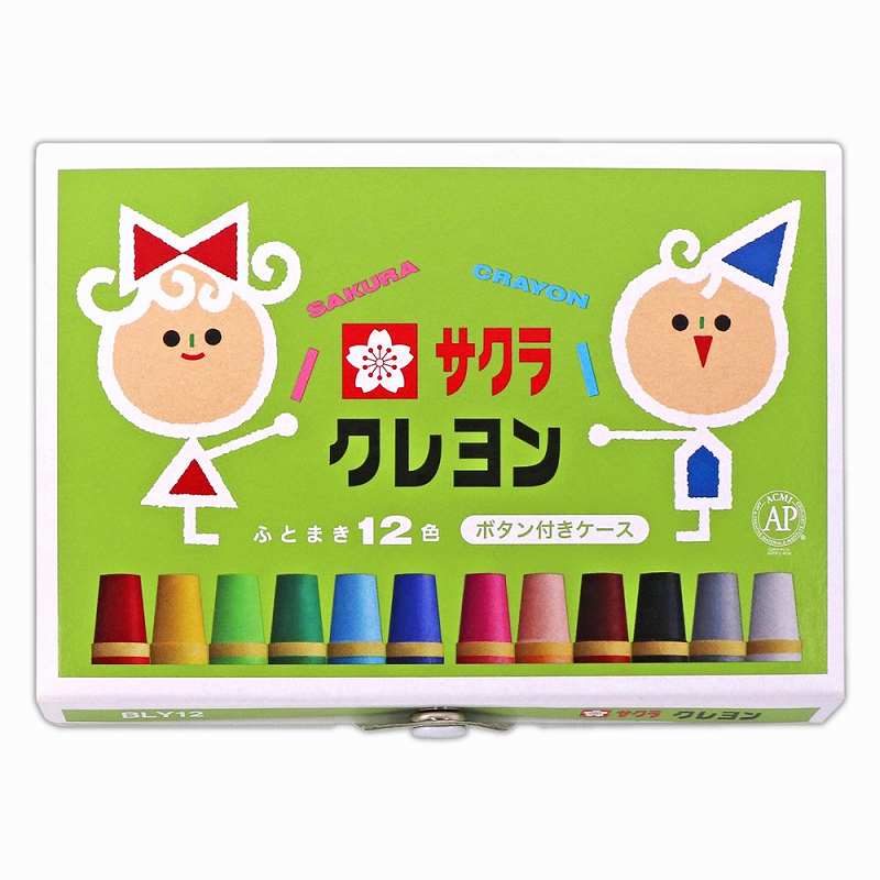 サクラクレパス クレヨン太巻 12色 ボタン付ケース BLY12