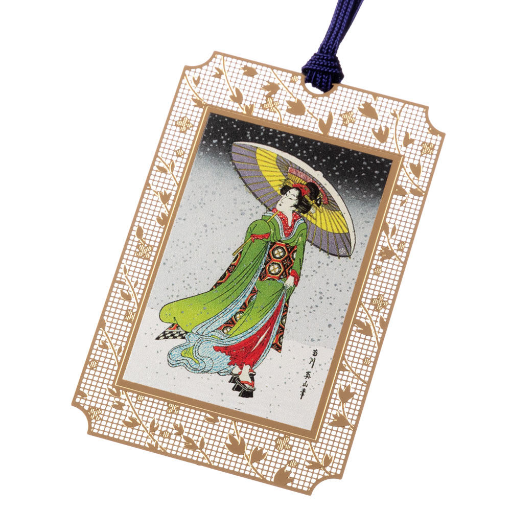 浮世絵しおり 英山・雪中美人 (UK006) 金の栞シリーズ 24K表面加工 金属製ブックマーカー Metal bookmark ...