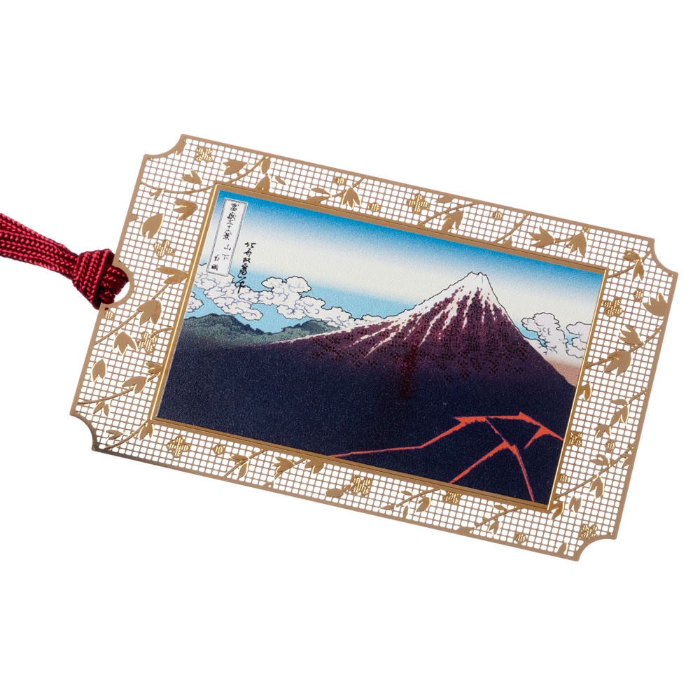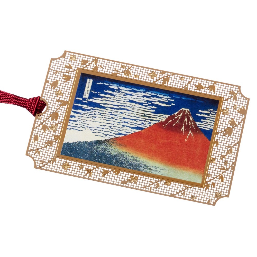 浮世絵しおり 北斎・凱風快晴 赤富士 (UK001) 金の栞シリーズ 24K表面加工 金属製ブックマーカー Metal bookm...