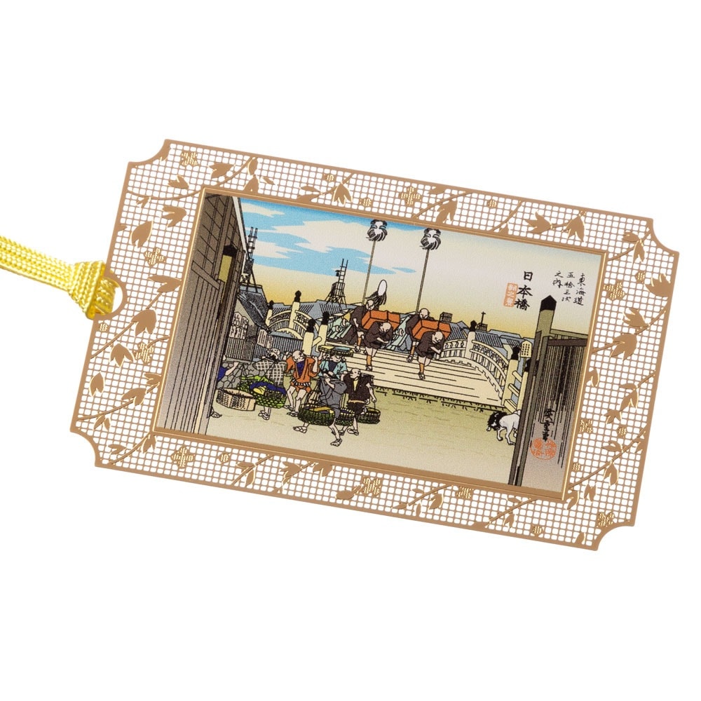 浮世絵しおり 広重・日本橋 (UK004) 金の栞シリーズ 24K表面加工 金属製ブックマーカー Metal bookmark ...