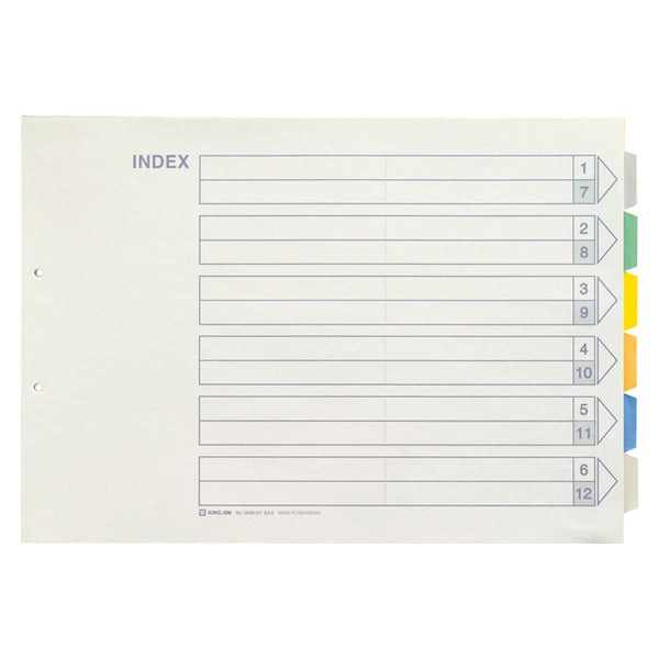 [1000E-6Y] カラーインデックス 6山 A3ヨコ型(A3E) 2穴 7枚1組