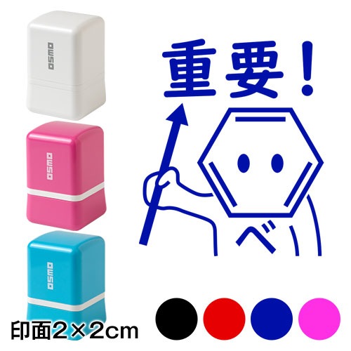ベンゼン環ちゃん 重要 理系のノート用メモスタンプ浸透印 印面2×2cmサイズ (2020) Self-inking stamp ...
