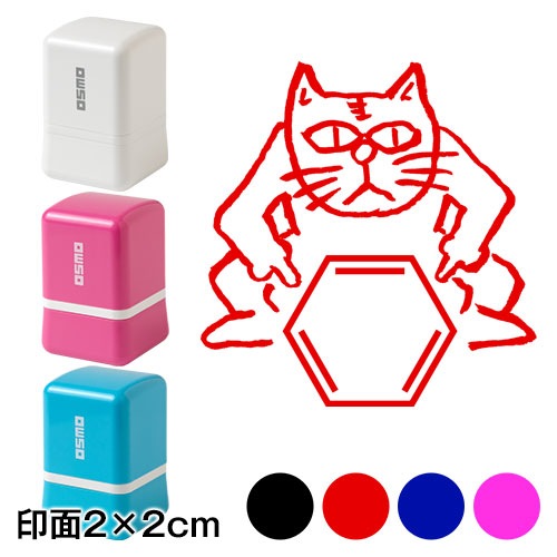 猫山田とベンゼン環 文字なし 確認 理系のノート用メモスタンプ浸透印 印面2×2cmサイズ (2020) Self-inking ...