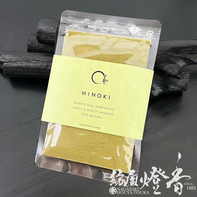お香/香原料『古人の智慧の香り【CHIE POWDER・HINOKI~日本産ひのき~/粉末30g】PP袋入』日本香堂