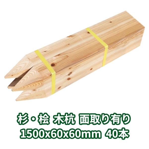 測量杭 木杭 1500mm×60mm角 面取り有り 40本入り 杉・桧 1本約950円 条件付き送料無料
