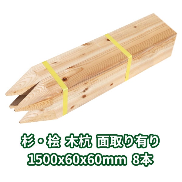 測量杭 木杭 1500mm×60mm角 面取り有り 8本入り 杉・桧 1本約1200円 条件付き送料無料
