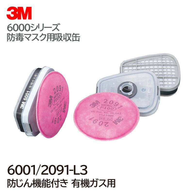 3M/スリーエム 有機ガス用 吸収缶 6001/2091-L3 (6000・6000F・6500シリーズ対応) 2個/1組 防毒マ...