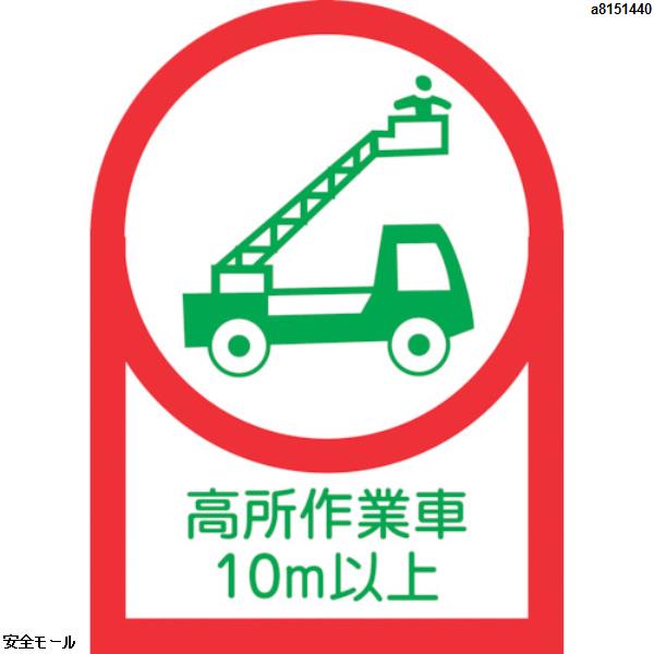 緑十字 ヘルメット用ステッカー 高所作業車10m以上 HL-110 35×25mm 10枚組 オレフィン 233110 1組