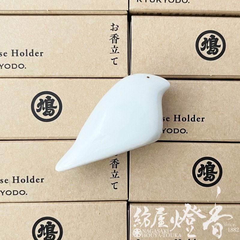 香立/香器『陶製香立・ハト(鳩)【シロ/SHIRO】紙箱[スティックタイプ用]』鳩居堂