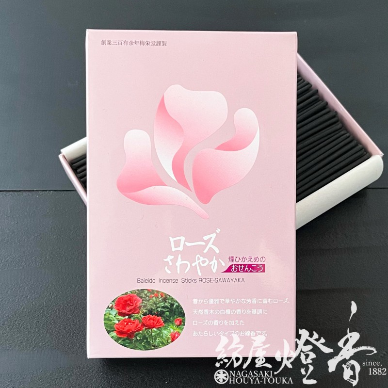 お線香『白檀基調【ローズさわやか-ROSE sawayaka-】短寸平型バラ詰[微煙]』梅栄堂