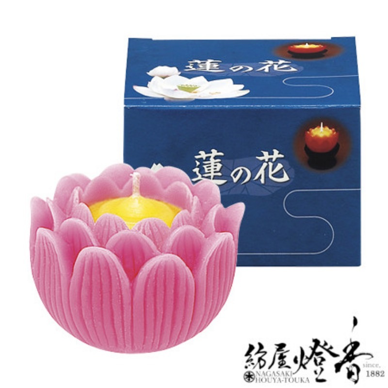 蓮型ローソク/ケース『蓮の花【ピンク/大/台付/36個】紙箱入[燃焼24時間]』マルエス