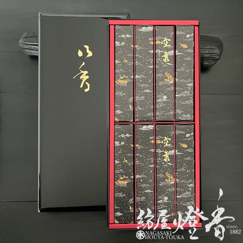 贈答/進物線香『極上沈香【空海(くうかい)-KUKAI-】短寸8箱黒塗箱入[有煙]』天年堂